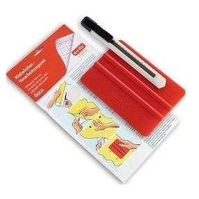 Odlamovací nožík skvěle poslouží k zařezání fólie, stěrka je vděčným pomocníkem pro vytlačení vzduchových bublin a vyhlazení fólie.