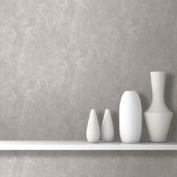 Elegantní šedo-hnědá, jemně strukturovaná vliesová tapeta s vinylovým povrchem, jemné šedo-stříbrné žíhání.