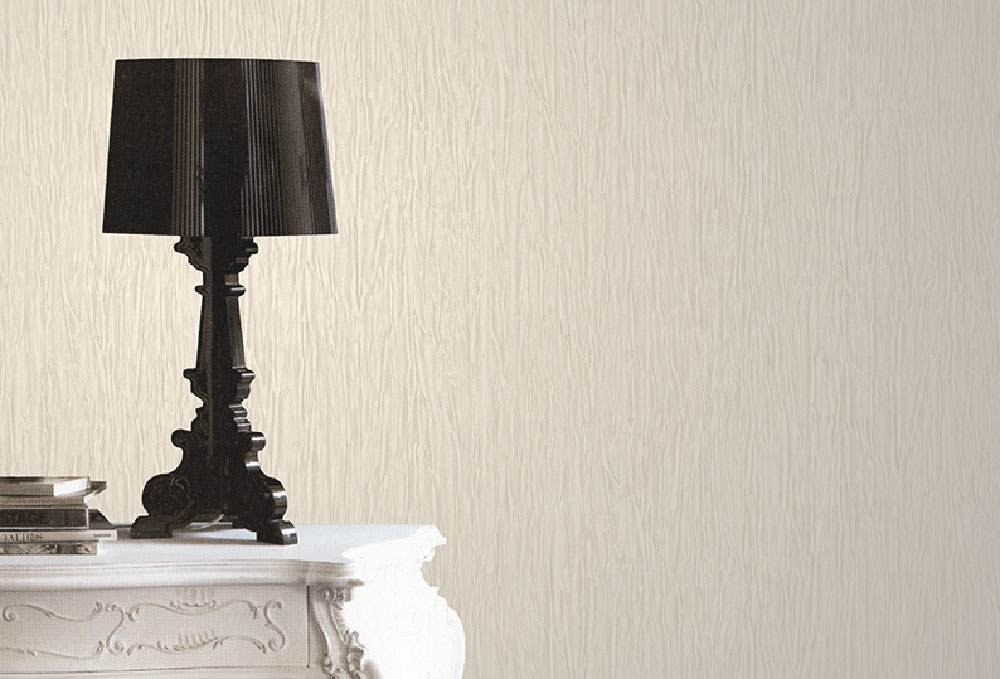Elegantní vliesová tapeta s mačkanou texturou. Odstíny světle béžové, nádech do růžova, jemné stříbrné třpytky.
