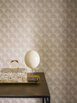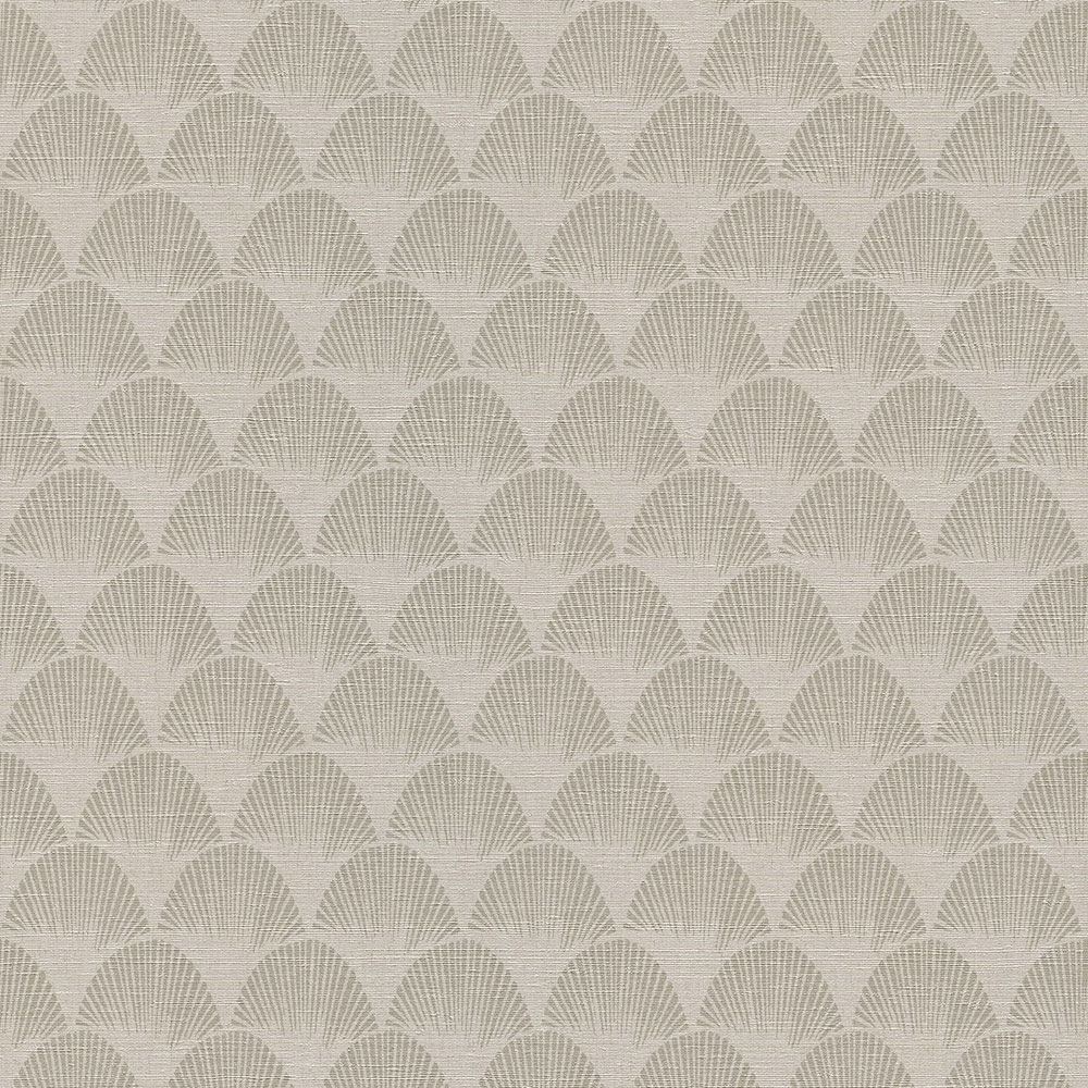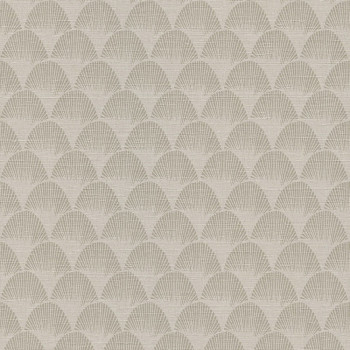 Vliesová tapeta s vinylovým povrchem na zeď s jemným geomegrickým vzorem a hrubší látkovou texturou v béžové barvě, vzor jemně metalický pololesk. Podklad vlies, povrch vinyl.