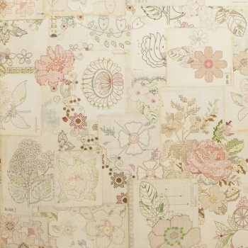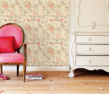 2 dílná obrazová tapeta s květinovými motivy v barvách krémová, béžová, růžová modrá.