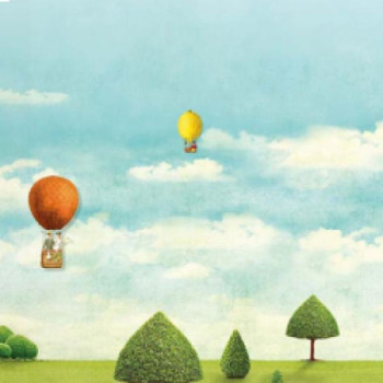 Létající balóny na oblačné obloze. 4 dílná vliesová obrazová tapeta.