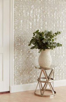 Ornamenty s 3D efektním zrcadlovým podkladem v krémové barvě.