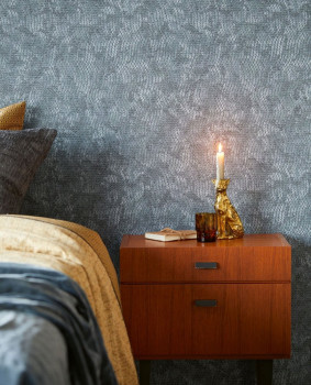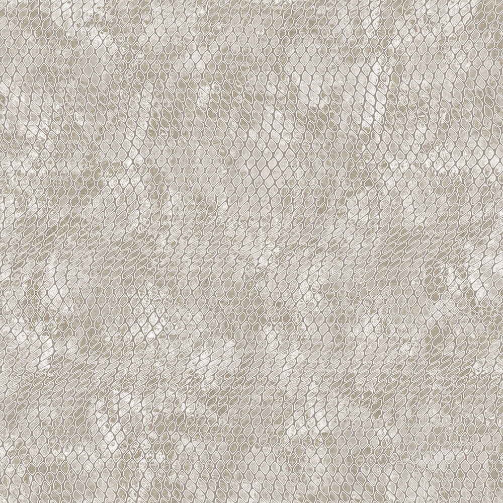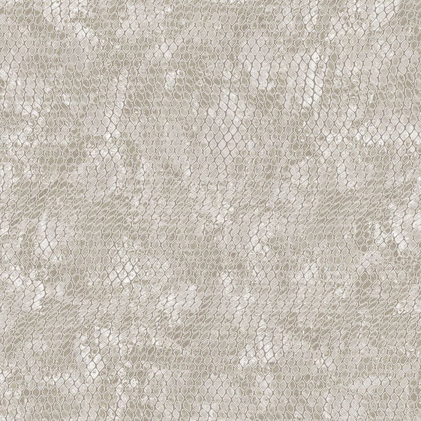 Vliesová tapeta imitace kůže krajty. Jemně plastický design v šedo-krémových odstínech, prolisy se stříbrným nádechem.