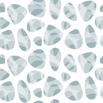 Vzor kamenů v šedo-modré barvě na bílé vliesové tapetě.