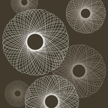 Spirály v bílé a béžové barvě na hnědé vliesové tapetě.