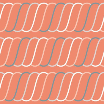 Geometrický vzor v tyrkysové a šedé barvě na oranžové vliesové tapetě.