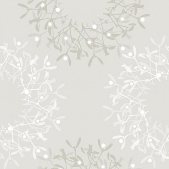 Věnce z jmelí v šedo-béžové a bílé barvě na šedé vliesové tapetě.