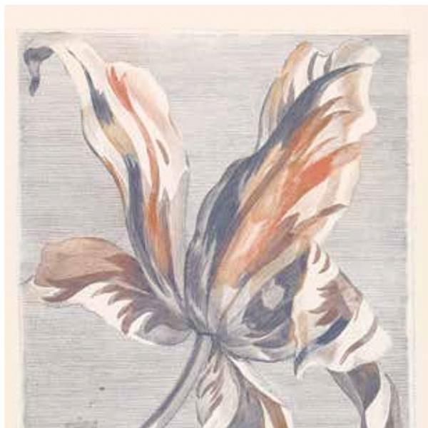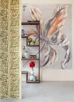 Květ v šedo-béžové barvě na vliesové tapetě.