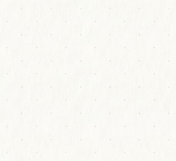 Bílá tapeta s jemnou vlnkovou strukturou a perlovými aplikacemi.