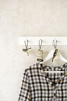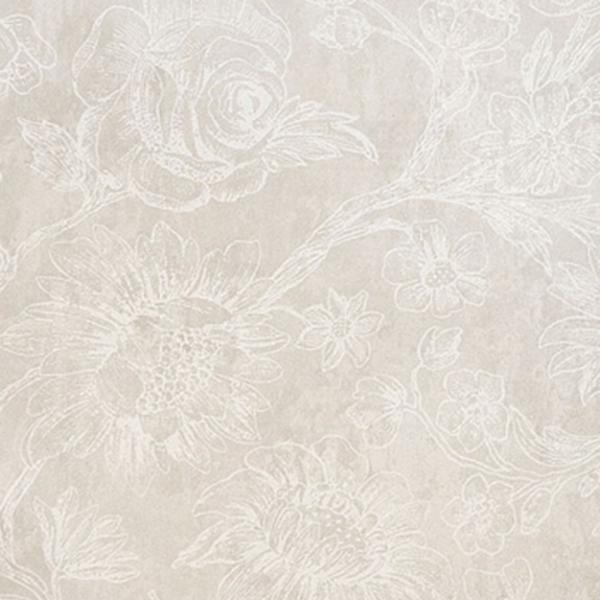 Květinový motiv na šedo-béžové vliesové tapetě.