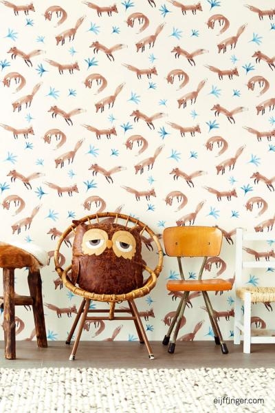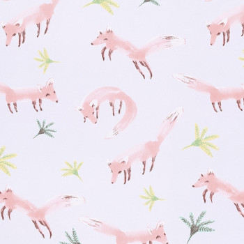 Vzor lištiček v růžové barvě na vliesové tapetě.