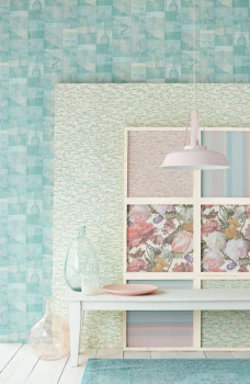 Patchworkový vzor v jemných tyrkysových odstínech.