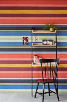 Pruhy v modré, červené, vínové, zelené a žluté barvě.