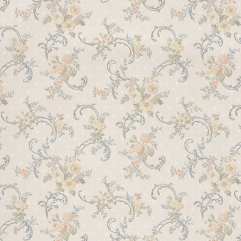 Oranžové kvítky, šedo-modrý vzorek na světlém béžovém podkladu. Vinylová tapeta 361051 Chambord, Eijffinger