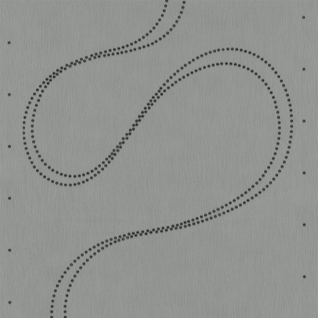 Křivky z ozdobných perliček na šedé vliesové tapetě.