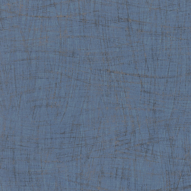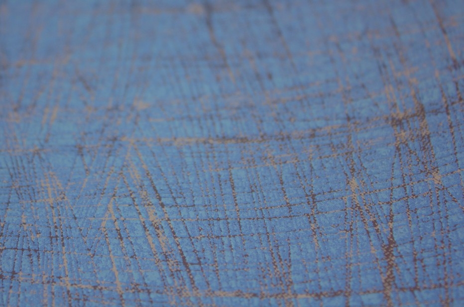 Vliesová tapeta na zeď, modrý podklad se škrábaným hnědým vzorem.