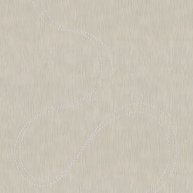 Křivky z ozdobných perliček na šedo-béžové vliesové tapetě.