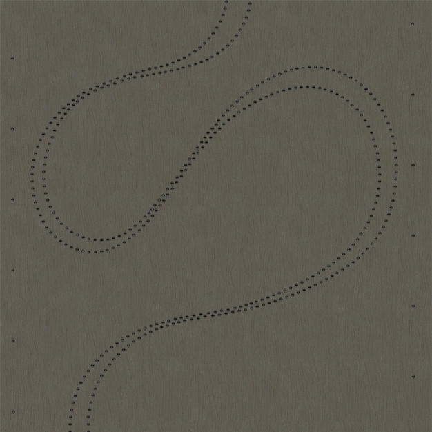 Křivky z ozdobných perliček na tmavě šedé vliesové tapetě.