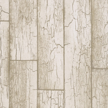 Dřevo je přírodní materiál, ze kterého dýchá krása, elegance a pohoda. Design dřeva zútulní každý interiér. Imitace bílo-béžových palubek se zlatými detaily na vliesové tapetě na zeď.