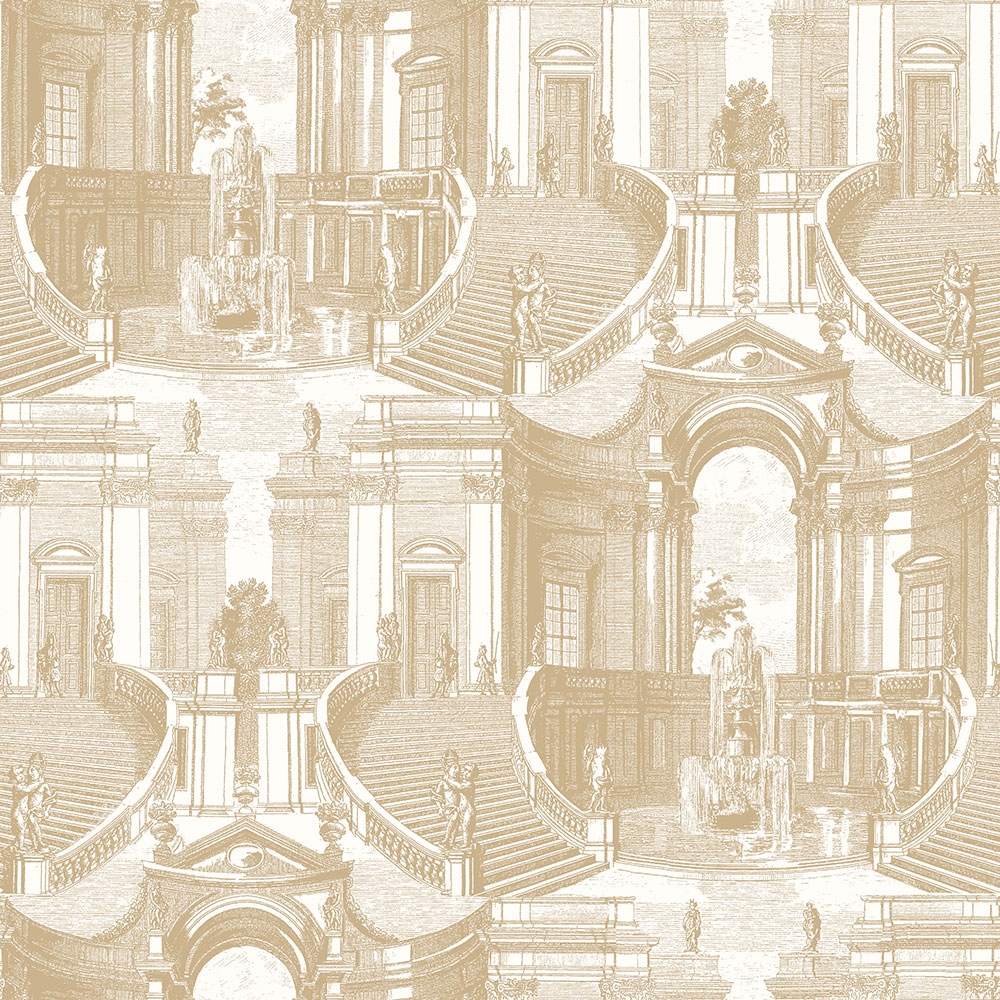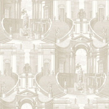Vliesová, hladká tapeta. Zlatý tisk na krémovém podkladu.