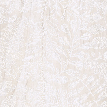 Bílé přírodní motivy na béžové žíhané tapetě na zeď.