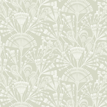 Přírodní motivy na zelené vliesové tapetě na zeď.