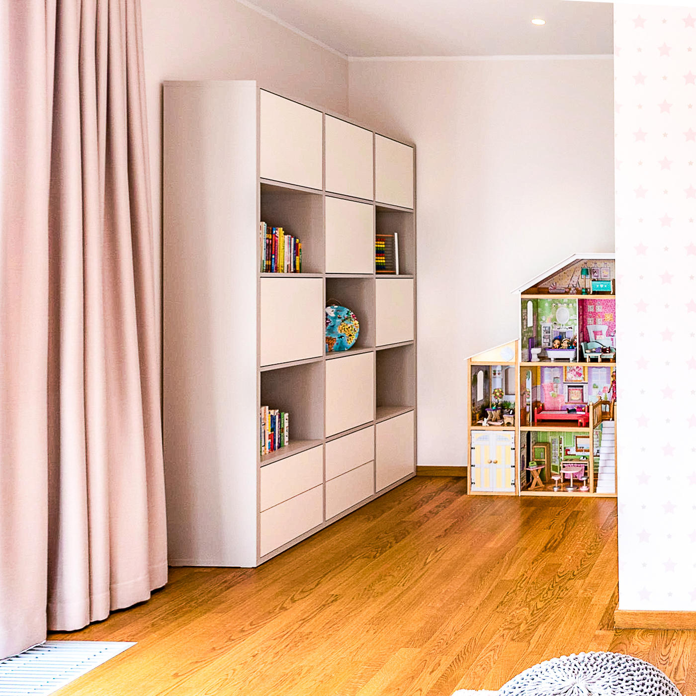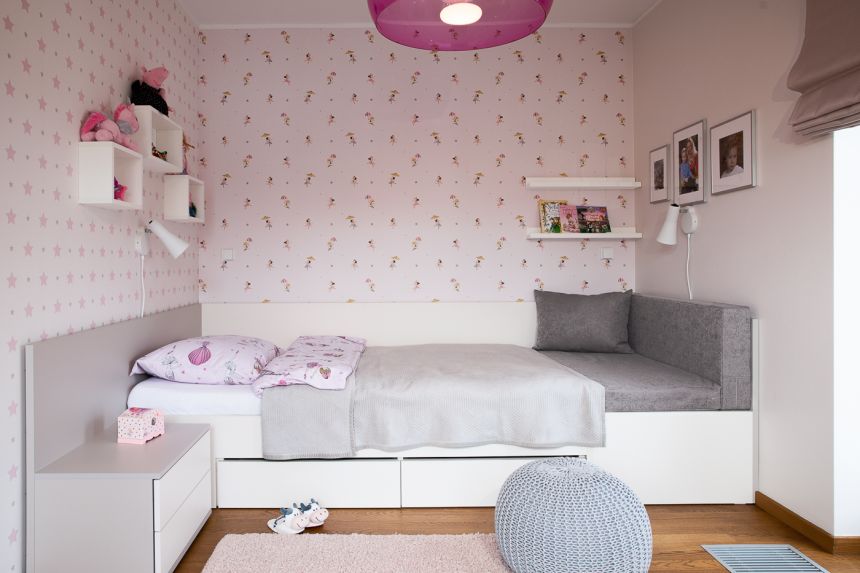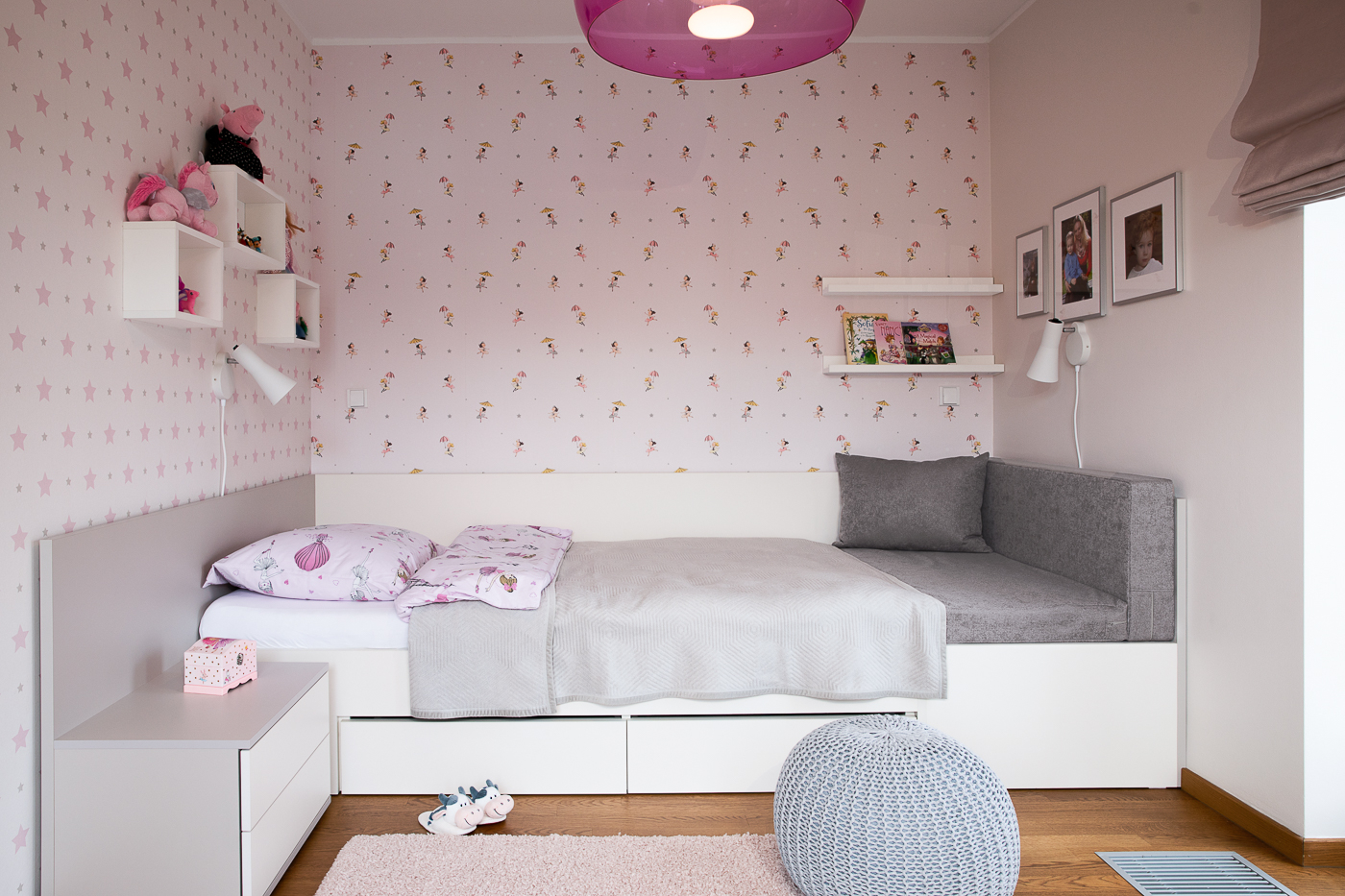 Pokoj byl navrhnut na míru holčičce, která miluje tanec, čtení a hraní si s panenkami. Cílem bylo vytvořit interiér, který bude růst s holčičkou.