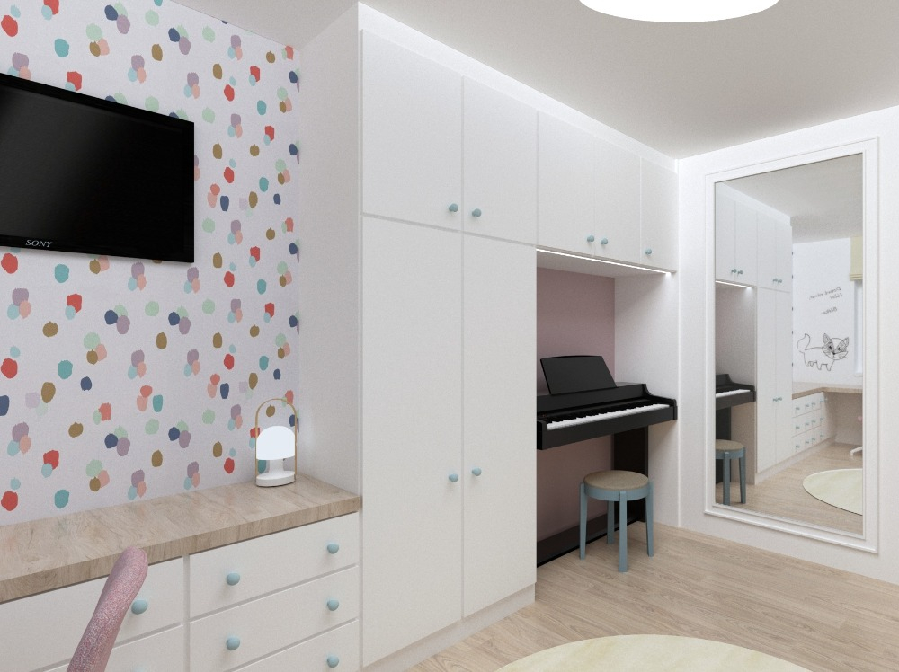 Inspirujte se vizualizací dětského pokojíčku holčičky předškolního věku s barevnou vliesovou tapetou 359050 z kolekce Rice od Eijffinger. Tapeta nejen rozveselí prostor, ale také malého školáka něčemu naučí.