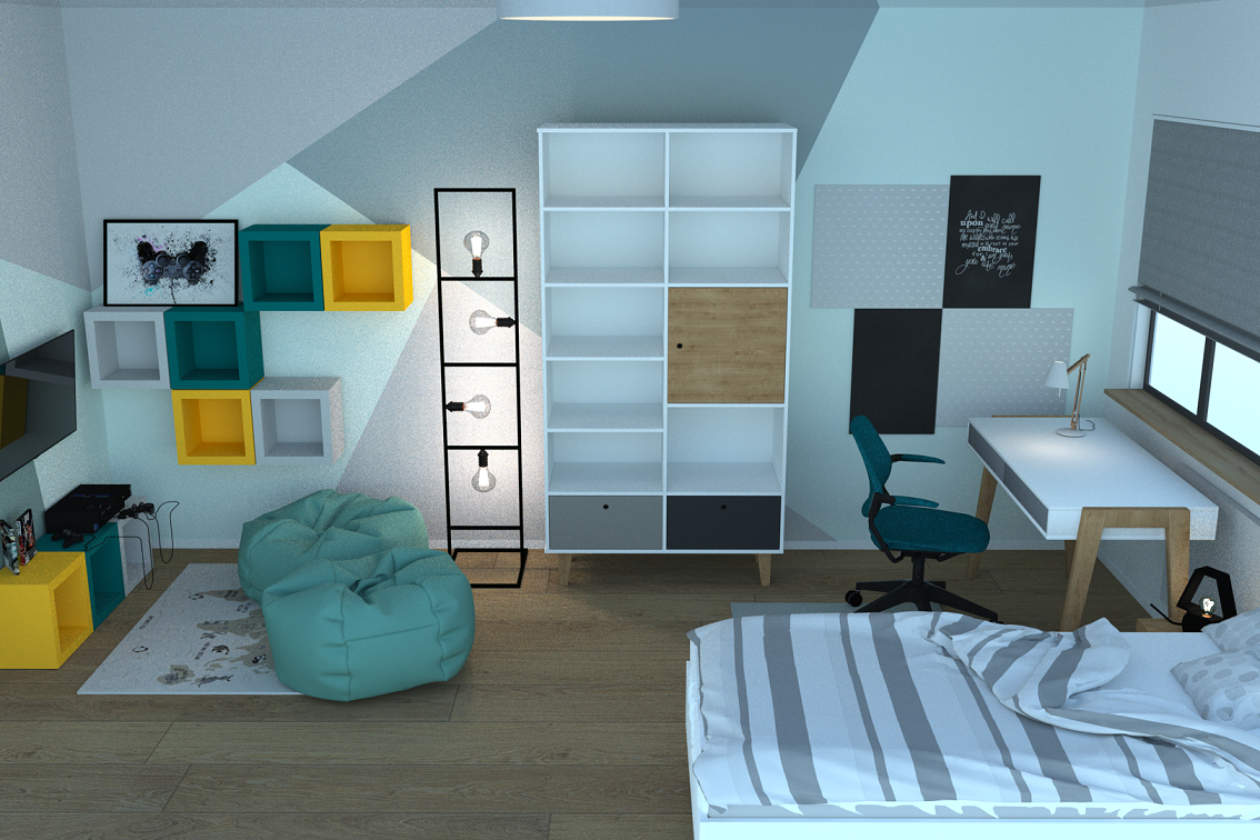 Na posledních dvou fotografií si můžete prohlédnout, jak pokoj vypadá nyní. Už se těšíme až bude realizace hotová.