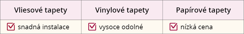 Tapety jsou skvělým způsobem, jak přidat do interiéru osobitý styl a atmosféru. Výběr správného materiálu tapet je klíčový pro to, aby tapety vypadaly co nejdelší dobu perfektně. Existují tři druhy tapet, které se liší svými vlastnostmi a vhodností pro různé prostory. Jsou to tapety: